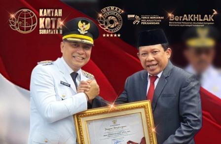 Surabaya – Dalam rangkaian upacara peringatan Hari Pahlawan yang dilaksanakan di Balai Kota Surabaya, Kepala Kantor Pertanahan Kota Surabaya II menerima penghargaan dan apresiasi langsung dari Wali Kota Surabaya atas kontribusi dalam percepatan pensertipikatan tanah aset milik Pemerintah Kota Surabaya.
