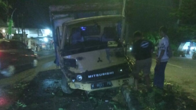 Kecelakaan bermula saat truk melaju dari arah utara ke selatan dengan kecepatan cukup tinggi. Pengemudi diduga kurang berhati-hati, membuat kendaraan oleng ke kanan, naik trotoar, menabrak pohon di median jalan, lalu terguling.