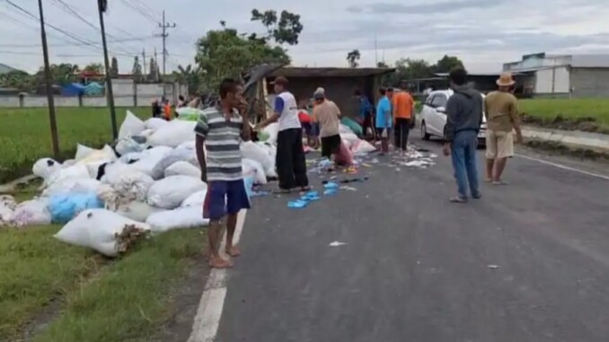 Dua kendaraan yang terlibat masing-masing adalah truk pengangkut kain perca dan truk bermuatan tujuh ekor sapi. Peristiwa nahas itu terjadi sekitar pukul 06.00 WIB saat arus lalu lintas cukup ramai. Truk pengangkut kain perca dilaporkan terguling hingga menutup jalan, sementara sebagian muatan sapi terlempar ke selokan di pinggir jalan.