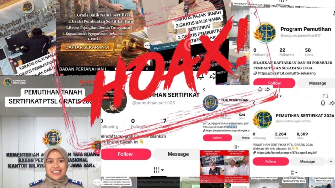 “Kami mengimbau masyarakat untuk selalu memastikan kebenaran informasi melalui kanal resmi ATR/BPN, baik lewat situs web, media sosial yang terverifikasi, maupun dengan datang langsung ke kantor pertanahan setempat,” tegas Shamy Ardian.