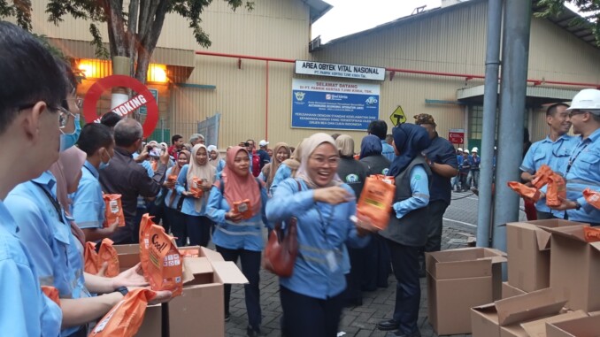 Sedikitnya 7000 paket takjil dibagikan kepada karyawan PT Tjiwi Kimia dan vendor yang berada di lingkungan Pabrik Kertas Tjiwi Kimia yang berada di Jalan Raya Surabaya – Mojokerto Kecamatan Tarik Sidoarjo pada Selasa (17/03-2026).